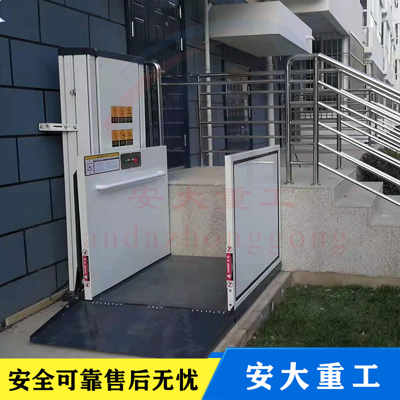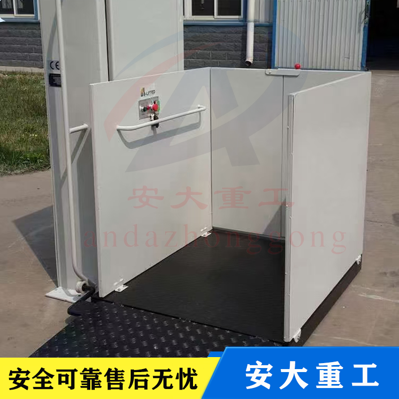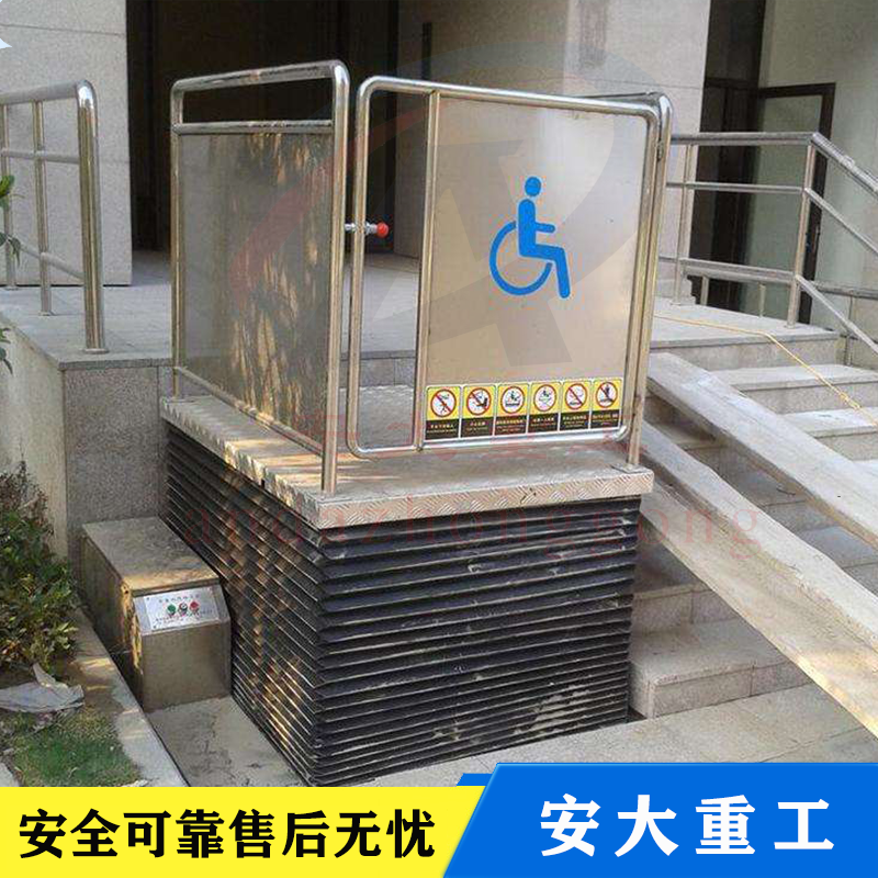 無障礙式升降平臺(tái),直接安裝于地面,無需土建配套地坑,施工簡單,產(chǎn)品放置戶外不易積水,不易生銹,維護(hù)簡便,升降高度1-6米。